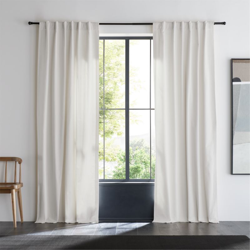 Lush and full-bodied, our cotton velvet curtain dresses up your window in pure luxury. Draping gracefully, the opaque curtain panel in ivory brings elegance to the dining room and a soothing softness to the bedroom. Hang our exclusive ivory velvet curtain panel from the back tabs for an elegant pleated style, use the rod pocket to create a more laid-back gathered look or add a set of our curtain clips (sold separately).