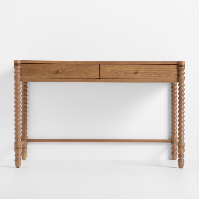 Meet Jack, our playful new collection with a spirit of adventure. The collection features intricate wood turnings—made from a solid piece of wood—that put a fun twist on the classic spindle style. In a rich hazelnut hue, our Jack desk features spindle legs that take on a more angular shape along the top and bottom for extra presence. Two large drawers provide ample space for the important work of being a kid—whether that's coloring or calculus homework. The result is an ultra-functional, heirloom-quality piece.