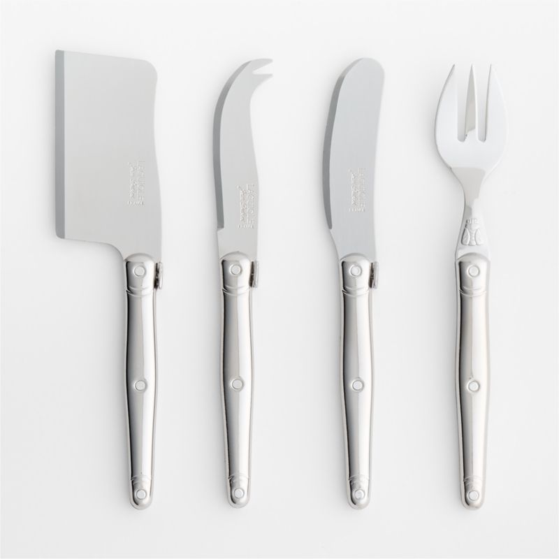 Charmingly detailed with the company's signature bumblebee, the tools in this four-piece cheese knife set are crafted by Laguiole of France, a factory renowned for its exceptional cutlery. Stainless steel shapes the spreader, pronged knife, fork and cleaver, each boasting slim, ergonomic handles. An elegant addition to your cheese board, this boxed set also makes a lovely housewarming, engagement or host gift.