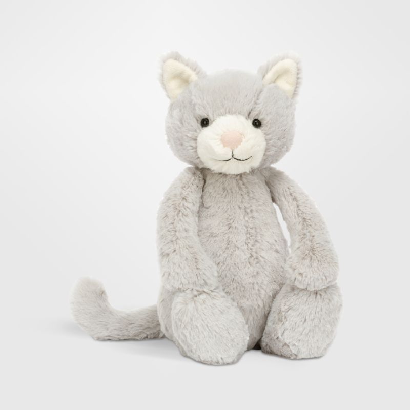 This kitty is ready for a new best friend! The Jellycat® Bashful Kitty features a slightly shy stitched smile, floppy paws and super-soft grey fur that's made for petting and cuddling.