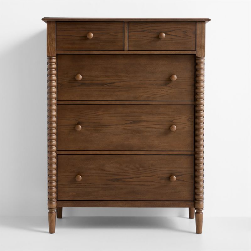 A bestseller for a reason, our Jenny Lind deep brown tall dresser is a showstopping storage solution that keeps everything organized. The iconic collection, with its intricate wood turnings, has been made in the same location with the same classic design for more than 20 years—but its modern sensibility means it hasn't aged a day. Each spindle is made from a single piece of wood, then hand-sanded to capture every gorgeous detail. We love the slight overhang of the top drawers, giving our piece a unique profile. Fun fact: This forever classic is named for the 19th century opera singer Jenny Lind, who was the pop icon and influencer of her day.