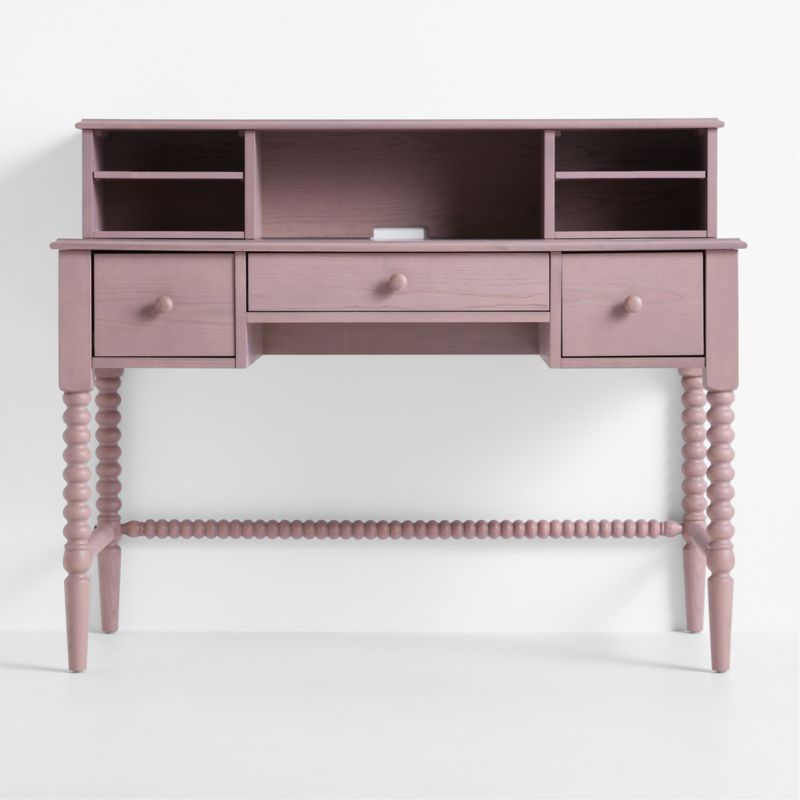 A bestseller for a reason, our Jenny Lind desk is a showstopping study solution that keeps bedrooms and playrooms organized, and the included hutch adds extra storage space for displaying favorite books and collectibles. The iconic collection, with its intricate wood turnings, has been made in the same location with the same classic design for more than 20 years—but its modern sensibility means it hasn't aged a day. Each spindle is made from a single piece of wood, then hand-sanded to capture every gorgeous detail. The lilac rose stain allows the desk's wood grain to show through, while adding a soft hit of color to a space. Fun fact: This forever classic is named for the 19th century opera singer Jenny Lind, who was the pop icon and influencer of her day.