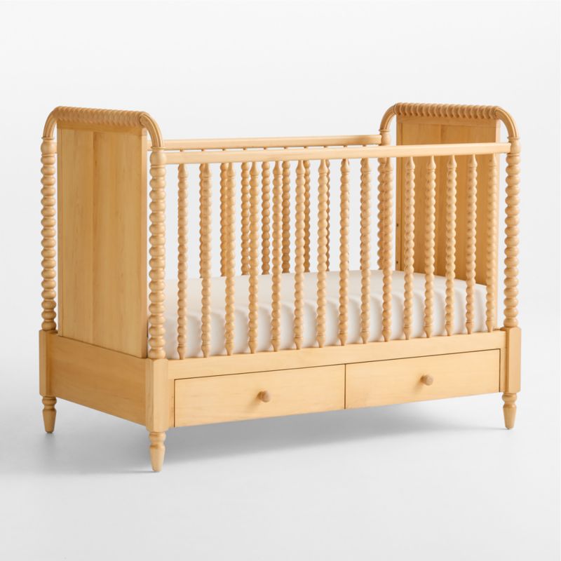Our Jenny Lind heirloom storage crib is a timeless piece in any nursery. The iconic collection, with its intricate wood turnings, has been made in the same location with the same classic design for more than 20 years—but its modern sensibility means it hasn't aged a day. Each spindle is made from a single piece of wood, then hand-sanded to capture every gorgeous detail. The crib seamlessly grows with your little one thanks to the easy-to-assemble toddler rail, and has 2 roomy drawers for storage over the years. Fun fact: This forever classic is named for the 19th century opera singer Jenny Lind, who was the pop icon and influencer of her day.