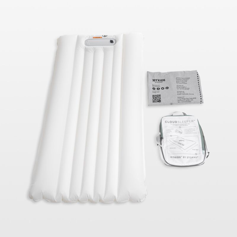 Give little jetsetters an extra-comfy sleeping spot with the JetKids™ by Stokke® CloudSleeper™ inflatable travel bed. The compact, lightweight mattress is designed to fit inside the BedBox™ ride-on suitcase for easy packing. It features an integrated pump that can be manually inflated in less than a minute with your hand or foot. The full-length side bumpers provide extra safety, while the soft, breathable air-mesh fitted sheet helps regulate little ones' body temperature for the comfiest ZZZs.