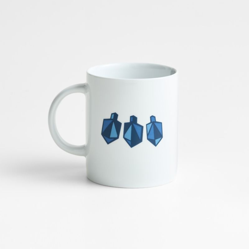 Joan Anderson's delightful, dimensional dreidels spin across our snow-white mini mug. Illustrated with faceted dreidels in tonal blue hues, the mug serves cozy drinks with a playful holiday touch. Our child-size mug makes a sweet Hanukkah gift, especially paired with hot cocoa mix or filled with gelt.