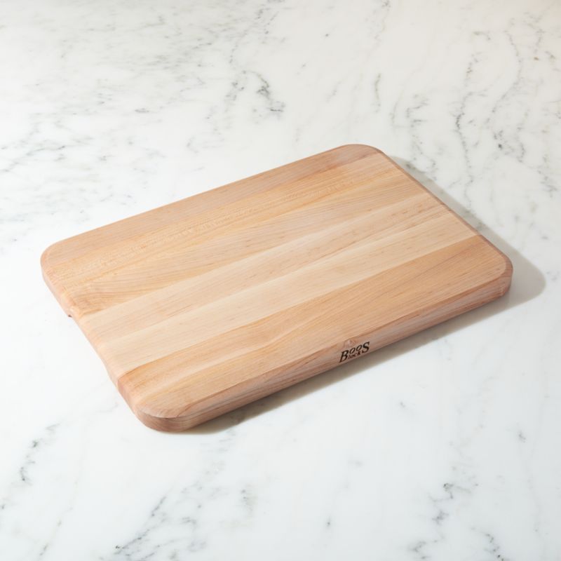 This beautiful solid maple cutting board is crafted in Illinois by the revered woodworkers at John Boos, founded in 1887. Featuring rounded corners and natural antibacterial properties, the cutting board is handmade, sustainably sourced and responsibly manufactured. This pale maple board preserves the sharp edges on knives, making it prized by professional chefs. Due to its handcrafted nature, each maple cutting board will be slightly unique.
