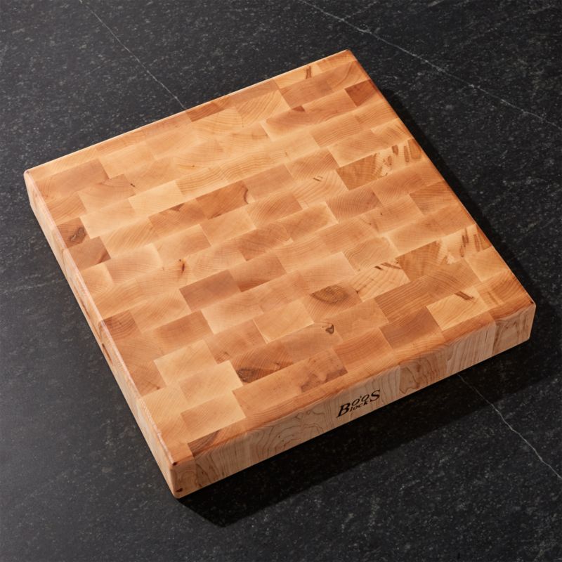 Pieced together in a traditional checkerboard pattern, each piece of end-grain hard rock maple in this gorgeous chopping block reveals its own grain and color. Crafted by the skilled woodworkers at Illinois-based John Boos & Co., the reversible board is unmatched in durability and sure to be a showstopper in every kitchen. Integrated hand grips make for a clean, streamlined look.