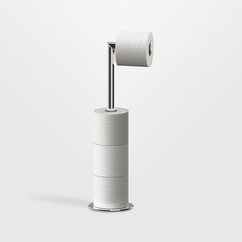 Keep plenty of rolls on hand with this modern toilet paper stand. Constructed of durable and attractive stainless steel with a polished finish, the freestanding holder suits your space. The stand holds one roll on its horizontal bar, which twists up to accommodate three more on its upright post. Especially perfect for powder rooms and guest baths so there's always plenty of paper available for visitors, the stand pairs with our other Joseph Joseph stainless steel accessories for a coordinated and orderly bathroom.