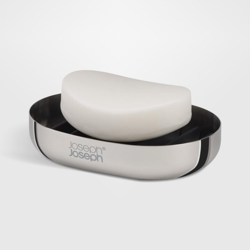 Elevate your favorite bar soap with this sleek soap dish. Crafted of stainless steel with a reflective polished finish, the oval looks modern on your kitchen sink or bathroom vanity. The black draining rack insert ensures excess water runs off, helping soap last as long as possible. Pair with our other Joseph Joseph stainless steel accessories for a coordinated and orderly bathroom.