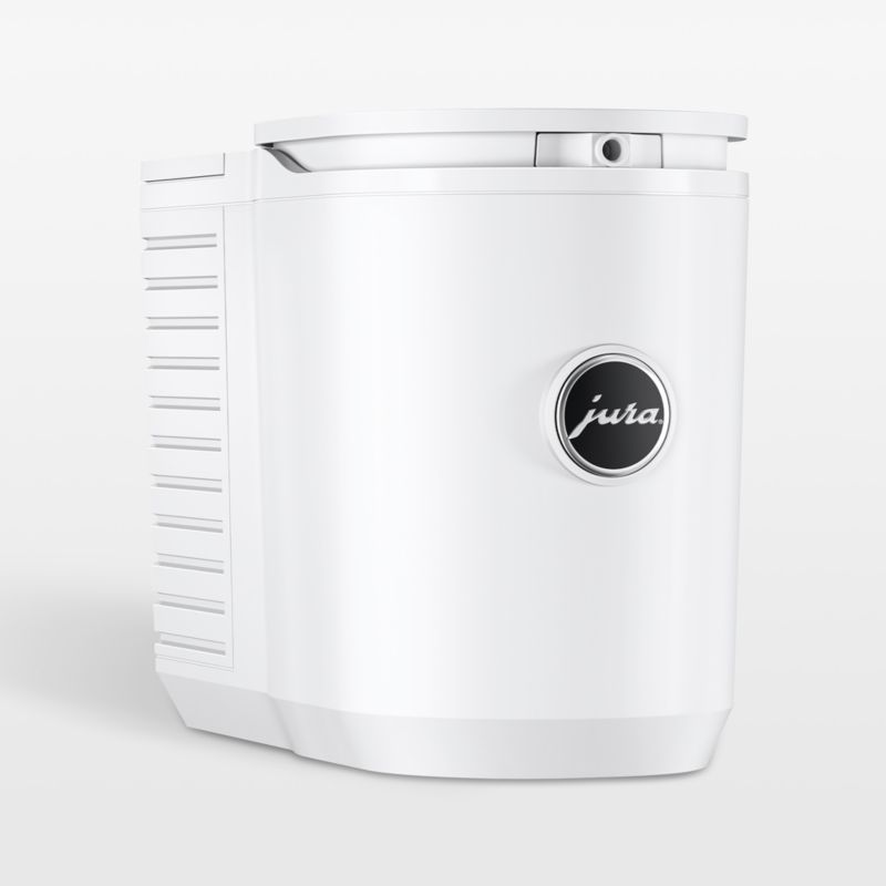 Keep milk chilled to the ideal frothing temperature in this sleek white milk cooler. Milk cooled to 39° Fahrenheit is ideal for creating finely textured foam for cappuccinos, lattes and chai. Holding up to 20 ounces of milk, the cooler features level indicators so you know when it's time to fill. Removable parts clean up easily in the dishwasher.