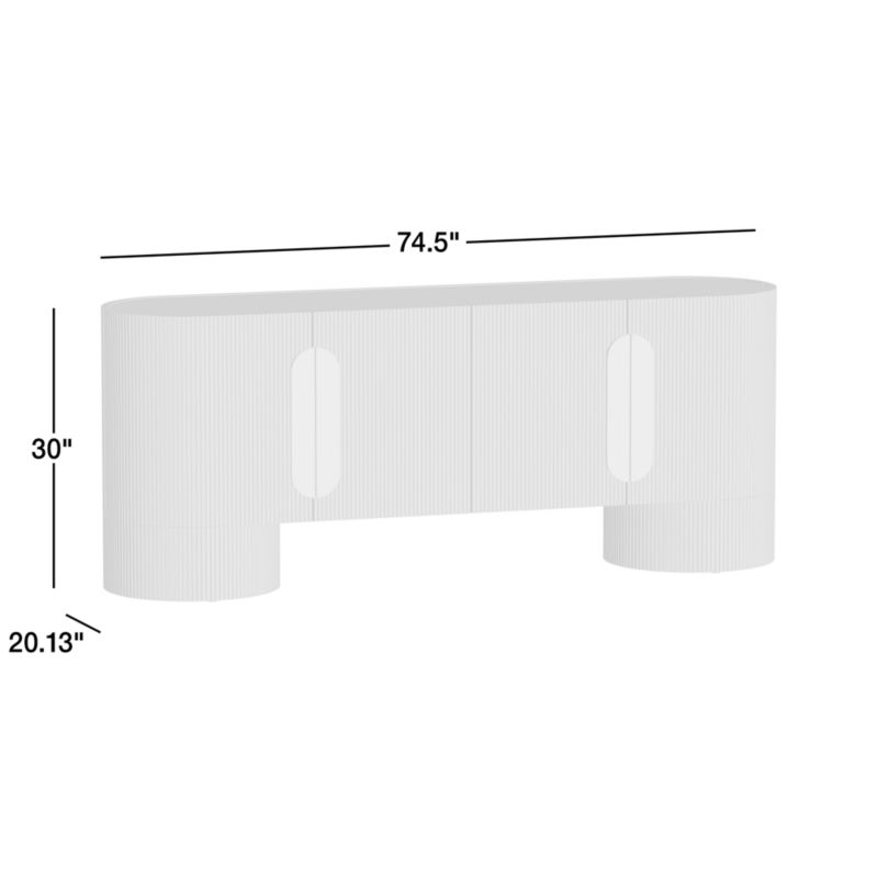 Bold-yet-accessible, our Kahn media console elevates your home decor with its unique blend of natural materials, modern design, and thoughtful functionality. Supported on wide cylindrical legs, the racetrack-shaped cabinet has a striking curved exterior wrapped in solid ash ribbing that's whitewashed for a light and airy look. Curved cream marble serve as the cabinet handles, opening up to roomy interiors with adjustable shelves.