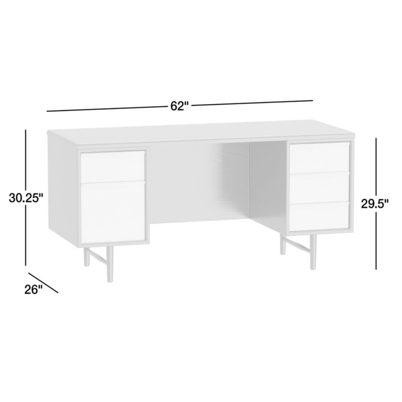 French modern meets Scandinavian mid-century in the stylish mix of our Kaufman desk. The combination of finishes on the ash desk adds graphic interest—black bringing the streamlined frame into sharp silhouette while whitewashed drawer fronts and natural pulls create contrast. We love the pillowed profile of the pulls that add subtle curves to the clean lines. Five drawers provide lots of storage, including one that accommodates letter and legal files. Fully finished, the desk is designed to float in the room for added versatility.