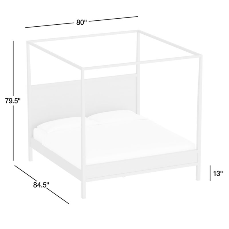 Keane streamlines the traditional canopy bed into an open, airy cube of beautiful mahogany. Architectural but never formal, the canopy bed features ever-so-slightly tapered posts anchored by simple panel head- and footboards. Designed by Bill Eastburn of William Eastburn Design, the queen bed has a light driftwood finish. Our best-selling Keane collection is a Crate & Barrel exclusive.