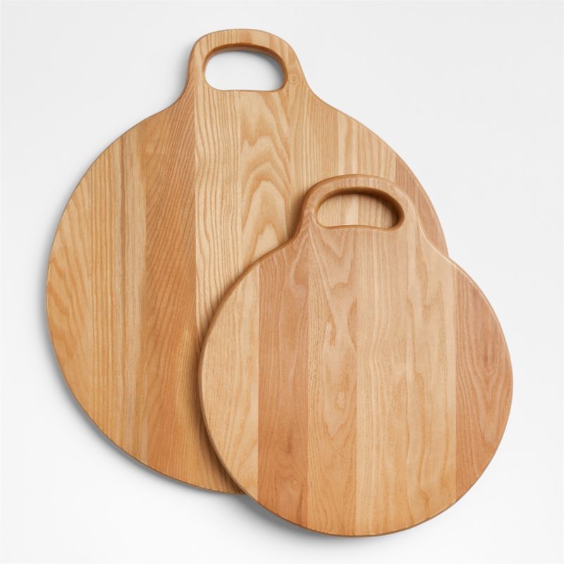 Grandly sized for entertaining, our Kibo serve boards makes a bold statement on the table, passing apps or displayed on open shelving. Leanne Ford designed the board with a wide handle for an artisanal, farmhouse look—and easy transport around the home for serving appetizers, cheeses and crudites. Smooth and sculptural, the round board enhances the natural texture and graining of the sustainably sourced ash wood.