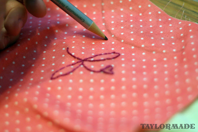 I started by embroidering the letter "f" on my fabric, I just penciled it freehand right on the fabric.