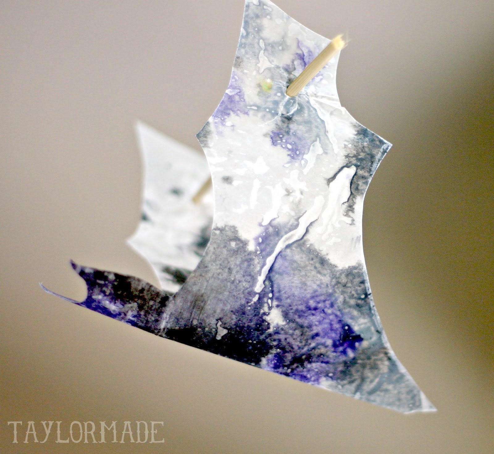 Use the Taylor Made Bat Template found HERE and cut out a few bats from the paper.