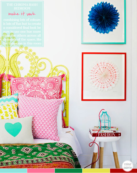 Mix bright modern elements with vintage pieces: