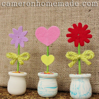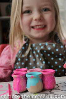 Here is a project to make some flowers that should be able to stand up to anything – frost included!  I found these little wooden pots on clearance, and my design assistant was so excited to paint them for our daily "project."  (We try to do a project every day – she's a pretty strict task master – won't let me slide even when I'm tired from work!).jpg)