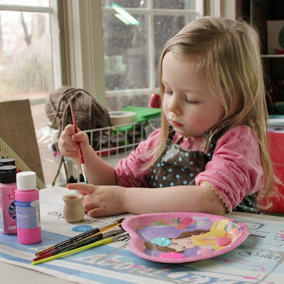 Ah, she's finally done – and SO proud of herself. I love how much she loves to get crafty with me. It's fun, it keeps us both happier while I'm doing stuff, and I think she probably is learning important skills that she'll use someday – maybe in a toy factory . . . just kidding!