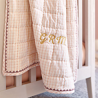 Lay your little one to sleep each night in high-quality, cotton crib bedding sets that are just as adorable as they are comfortable. The crib is the centerpiece of your nursery, so make it a beautiful focal point with the best baby bedding, fun animal prints, geometric patterns and gorgeous neutrals. Soft, whimsical pink bedding with kittens, bunnies or fairy princesses is what dreams are made of for your precious little girl. Race cars, sports and outer space set the scene for an energetic little boy. Choose a Crate & Barrel exclusive blanket or quilt, fitted crib sheet, crib skirt, or the full matching set. Often, you can find matching changing pad covers as well to expand the nursery's theme. Nothing says sweet dreams like cute baby bedding. An added benefit: free shipping on select crib bedding.