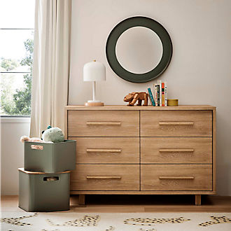 A nursery necessity for Mom, Dad and baby, changing tables are a versatile addition to your new bundle of joy's space. Not only do they provide a convenient place to swap out a dirty diaper for a clean one, they also help anchor the room while offering extra storage. Want to keep it simple when decorating baby's nursery? Go with a solid white changing table. It readily meshes with cribs, dressers, kids' rugs and other baby furniture in all sorts of color schemes and designs. If you prefer to take a slightly more modern approach, opt for a black changing table instead. Either way, a changing table topper helps keep your little one comfortable throughout the diaper-changing process. What's even better: Crate & Kids features an assortment of changing tables with drawers as well. Stow away all the essentials, like diapers, baby powder and baby wipes, after the diaper change is done, then easily pull them back out during the next go-around. You can even add an unexpected pop to the kids' changing table with metallic or bow-shaped drawer pulls. For families that are constantly on the go, be sure to keep a baby mat, diaper bag and other baby gear on hand when you're far from home.