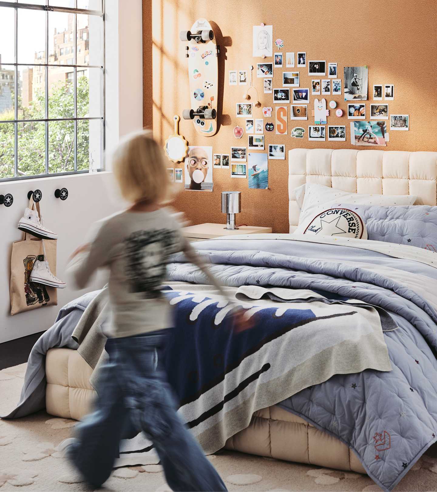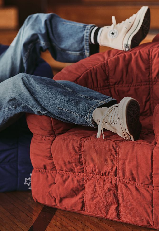 Designed for parents who want to give their kids a bedroom refresh that stands out without feeling out of place, it has a curated palette of classic neutral hues that are punctuated by Converse red. The result is a street style aesthetic that blends seamlessly with modern home decor. From duvet covers featuring graphic, large-scale prints to softer, high-quality sheet sets that give a nod to the classic high-top, every piece is crafted with the durability and softness you'd expect from Crate & Kids.