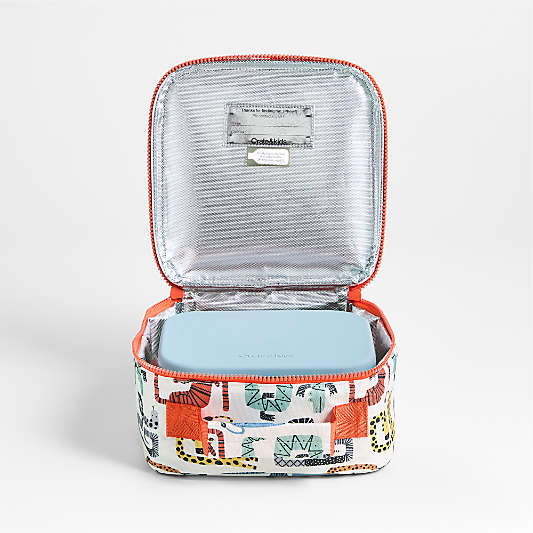 When it comes to packing meals for your children's day at camp or school, the kids lunch boxes at Crate & Kids keep their food fresh until it's time to eat. Made of recycled materials, each soft-sided lunch box for kids is featured in favorite colors, patterns and whimsical designs that speak to your little one's personality. Not only do our school lunch boxes have a roomy interior, an adjustable and removal divider, padded handle and exterior pocket (perfect for napkins) but they also act as insulated lunch boxes for kids that keep their food at-temperature until snack time or lunchtime rolls around. For a truly unique personalized lunch box for kids, you have the option to get your child's name, initials or a nickname embroidered on the front. You get your choice of font and thread color. To achieve a coordinated look, be sure to find a cute lunch box for school that matches the designs on our Crate & Barrel kids backpacks, stainless steel water bottles and pencil cases.