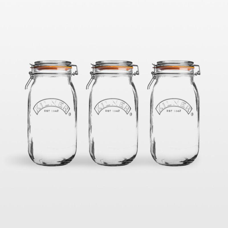 The Kilner® clip-top jar is perfect for storing pantry basics or preserving fruits and vegetables. Made of high-quality glass embossed with the company logo, the round jars offer pristine clarity and are constructed to be consistently thick with no weak spots. The stainless steel clip system, along with a durable rubber seal, provides just the right tension to create an airtight and secure seal. The set includes three 68-ounce jars that are the perfect size for canning whole fruits and vegetables or storing dry goods such as cereal and grains.