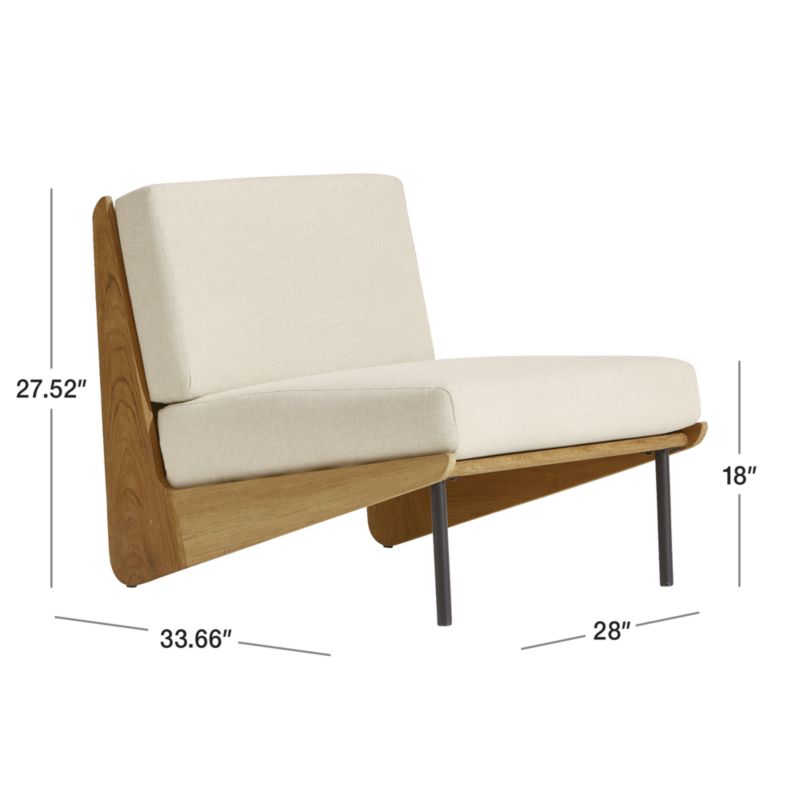 Durable solid teak and steel get a modern look in Kinney. The lounge chair's dynamic profile and playful mix of materials redefine outdoor furniture. The frame leans back at a comfortable recline with a slatted back and dramatically shaped boomerang legs. Tubular steel legs in the front add linear counterpoint in contrasting black. Boxy seat and back cushions in a neutral shade promise a comfortable stay. Left unfinished, teak will weather to a beautiful silvery grey. If you prefer the original warm color, maintain the chair with our Golden Care ® Teak Protector (sold separately). Pair the Kinney lounge chair with the coordinating coffee table, sofa and chaise in this exclusive collection for design-forward outdoor entertaining.