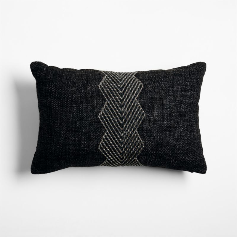 Elegantly embroidered, our Kirra outdoor throw pillow is subtle yet striking. Thick recycled fiber yarns stitch a band of stacked Vs on the delightfully nubby base, creating an intricate plaited or tiled look. The elevated tonal palette keeps the focus on the textural design and ensures that the pillow pairs effortlessly with others in our collection. Toss the lumbar pillow on your outdoor sofa, chaise or chair for an instant upgrade.