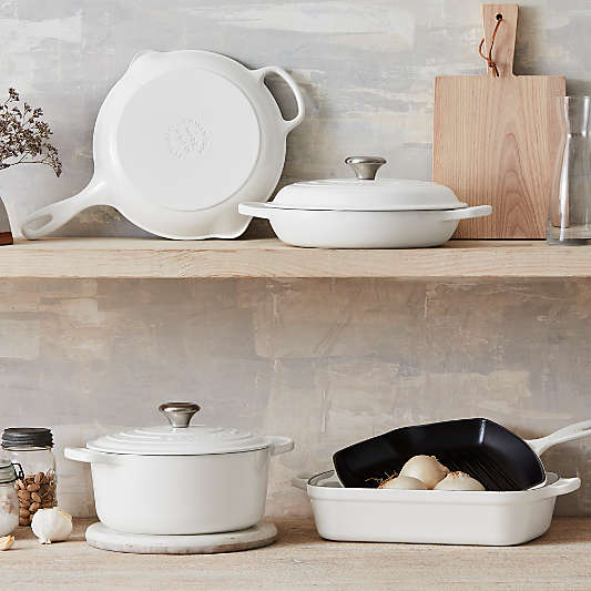 Whether you're an occasional cook or a culinary master, it's important to choose the right cookware set for your experience level and design style. When selecting a cookware set, consider first the amount of cooking you do. Enjoy creating one-pot meals with little clean-up? The 5-piece starter of a basic pots and pans set is a great fit to fulfill minimal meal preparation. If you like to meal-prep once and eat all week, larger cookware sets will accommodate making multiple lunches and dinners at the same time. When cooking breakfast for the whole family, a pan set is a popular choice for making pancakes and omelettes simultaneously. Either way, cut clean-up time with cooking sets that are dishwasher-safe or opt for a non-stick pots and pans set from brands like Henckels cookware for seamless scrubbing. For extra protection against scratching and long-term use, look for hard-anodized cookware sets from brands like T-fal and collections like Calphalon Premier non-stick cookware.