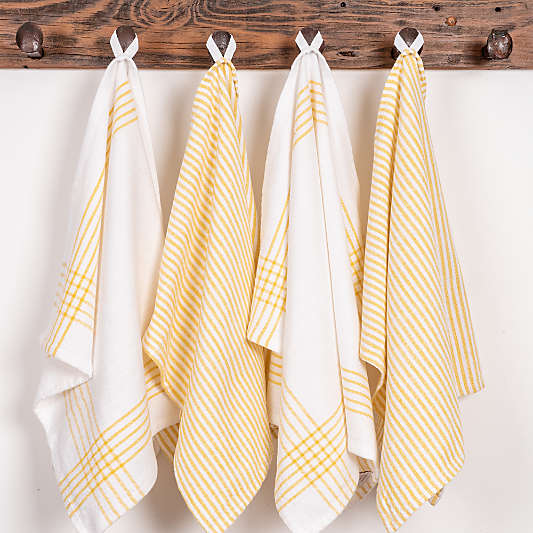 Keep yourself and your kitchen clean with quality dish towels of every material and color. When preparing a meal, kitchen towels are an essential part of the process. Use one dish towel to wipe off your work surface, whether it's the countertop or a cutting board, and be sure to keep a second kitchen hand towel within reach to dry your hands between washes. If you need to use multiple kitchen hand towels while cooking, opt for a dish cloth and a kitchen towel set. Or, fill your kitchen space with two sets of dishwashing cloths and flour sack towels—one for drying dinnerware and another for food preparation. Once the meal is done and it's time to wash the dishes, use a kitchen dish towel to dry everyday cookware, or wipe down your fine china with a delicate tea towel. Keeping a set of the best kitchen dish cloths on hand ensures that your dishes are dry and ready to be put away quickly for a clutter-free space.