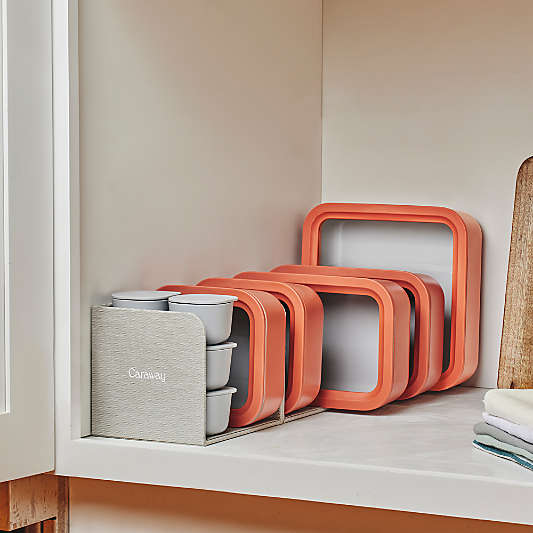 If there’s a bane to anyone’s kitchen organization, it’s the mismatched food storage containers that don’t fit together and always seem to be missing a lid. We promise this tip is a game changer: “Buy a set of clear food storage containers that are stackable and/or nestable,” advises Crate & Barrel’s food storage buyer Sophia Rozier. “If you are not buying a set, consider buying multiples of different containers so that they will be easier to stack and store compared to dozens of different containers.”