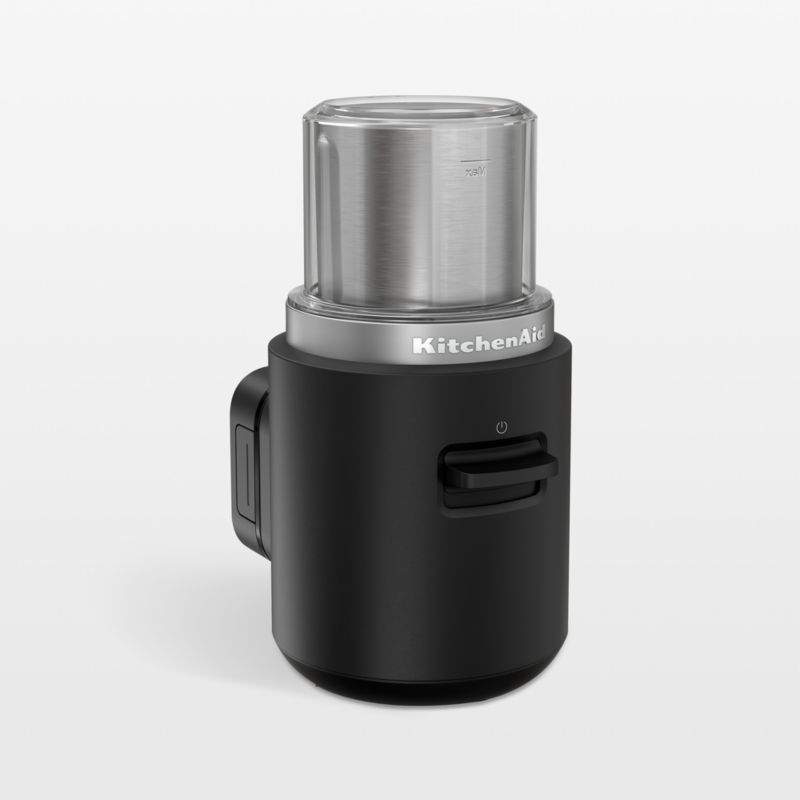 All the power you expect from KitchenAid, without the cord. Compact and convenient for everyday use, this black coffee grinder quickly grinds beans for up to 12 cups of coffee with one-touch operation. Stainless steel blades grind beans easily, while the powerful rechargeable lithium ion battery delivers optimal runtime, performance and portability. This black cordless coffee grinder goes on the go for freshly ground beans in the office, in a dorm room or at a campsite.