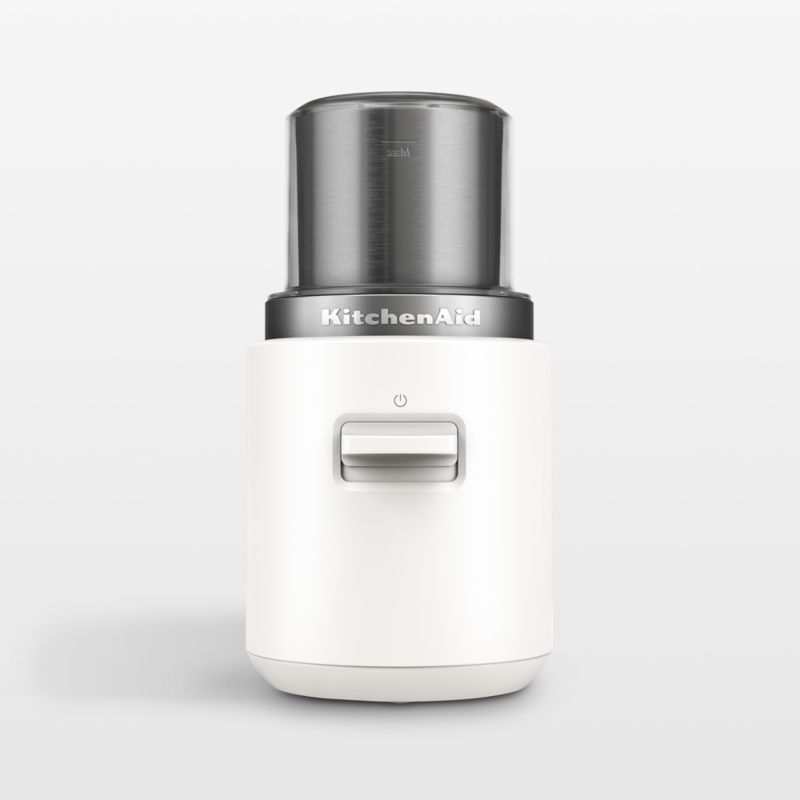 All the power you expect from KitchenAid, without the cord. Compact and convenient for everyday use, this coffee grinder quickly grinds beans for up to 12 cups of coffee with one-touch operation. Stainless steel blades grind beans easily, and a powerful rechargeable battery (sold separately) delivers optimal runtime, performance and portability. Finished in porcelain white—KitchenAid's warm and fresh neutral hue—this cordless coffee grinder goes on the go for freshly ground beans in the office, in a dorm room or at a campsite.