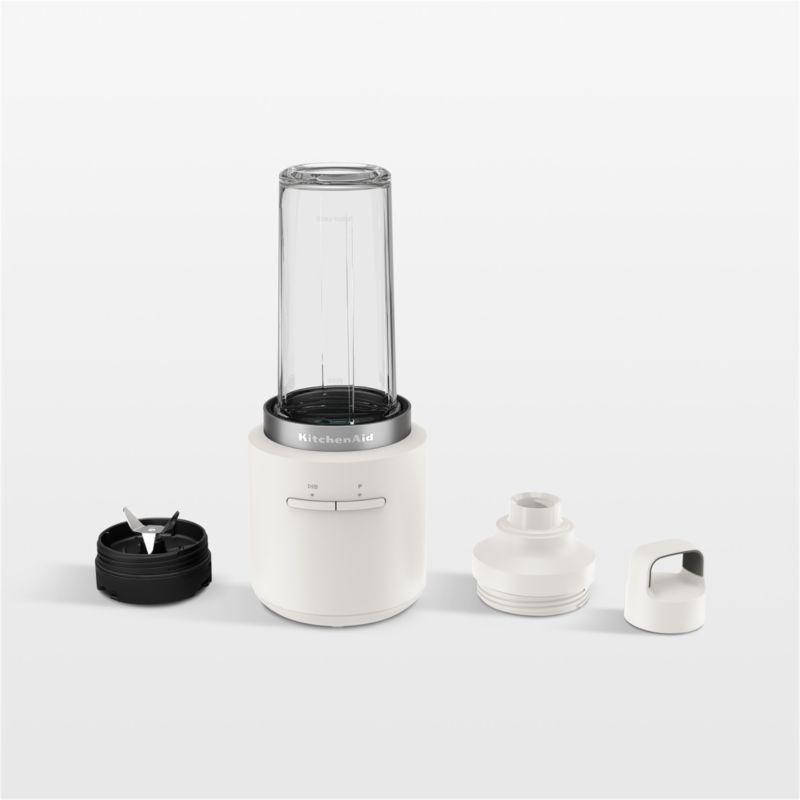 All the power you expect from KitchenAid, without the cord. Compact and convenient for everyday use, this personal blender finished in porcelain white—KitchenAid's warm and fresh neutral hue—whips up smoothies, protein shakes, sauces and frozen cocktails with one-touch operation. A powerful rechargeable battery (sold separately) delivers optimal runtime, performance and portability. Featuring a blade specially designed to handle frozen ingredients with ease, the cordless blender includes a dishwasher-safe blending jar with travel lid so you can take your custom drinks on the go.