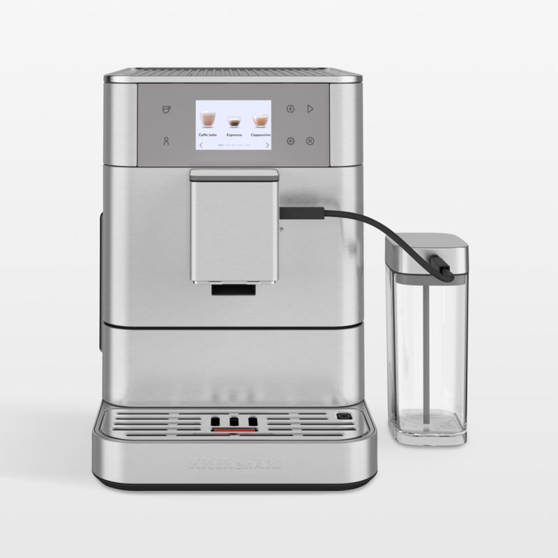 This fully automatic espresso machine crafts cafe-worthy macchiatos, lattes and more with the press of a button. Choose from over 20 preprogrammed coffee classics, or create a user profile to store personalized recipes for drinks made precisely to your preferences. Offering 7 grinding levels to suit your beans and drink choice, the machine provides smart dosing to eliminate guesswork. The machine also automatically heats and froths milk to create silky foam for luxe cappuccinos and flat whites. Clad in stainless steel, the KF7 brings a classic look to your countertop or coffee station.