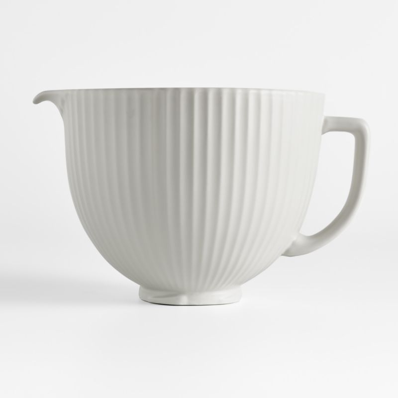 Customize your KitchenAid stand mixer with this white titanium-reinforced ceramic bowl with elegant fluting reminiscent of a Grecian column. Ideal for chilling dough or melting chocolate, the bowl boasts great heat and cold retention and may be used in the freezer, microwave and oven then cleans up easily in the dishwasher. This bowl fits all KitchenAid 4.5- and 5-quart tilt-head stand mixers and resists chipping, cracking, crazing and staining. Finished in a bright white glaze, the classic column mixing bowl makes a sweet gift for bakers who love their KitchenAid mixers.