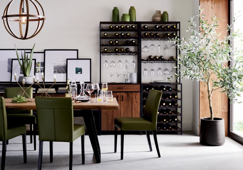 Doors, shelves and drawers of solid black walnut are set within slim, architectural iron frames in the handcrafted Knox collection. The clean-lined mix of open and closed storage provides a versatile design that works well in any room.