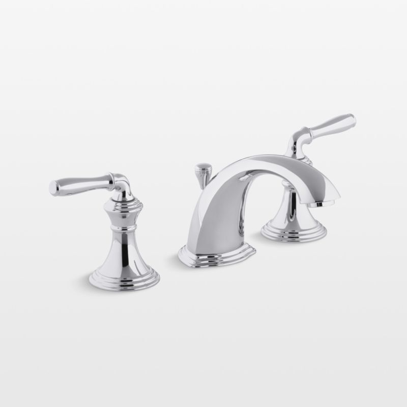 A Kohler faucet from our curated selection instantly transforms your bathroom, whether you're simply swapping out an old faucet or going for a total makeover with one of our bathroom vanities. With stepped accents, flowing curves and a polished chrome finish, the Devonshire sink faucet draws on Old World design for a refined look. Easy-to-install, the widespread faucet features leak-free valves and lever handles for independent control of hot and cold water.
