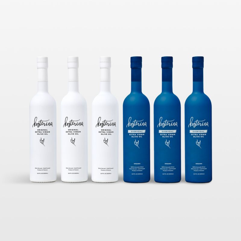 Stock up on delicious olive oils from Kosterina with this six-bottle set. Perfect for finishing or dipping, the Original Extra-Virgin Olive Oil enhances salads, cheese, meats and vegetables with incredible depth and flavor. The Organic Everyday Extra-Virgin Olive Oil has a mild, fruity flavor and stands up to heat beautifully with a smoke point of over 425° F. Both oils are made from small batches of early-harvest Koroneiki olives grown in southern Greece, provide exceptional flavor and are rich in polyphenols—powerful anti-inflammatory antioxidants that also make it taste amazing. The set includes three bottles of each type.