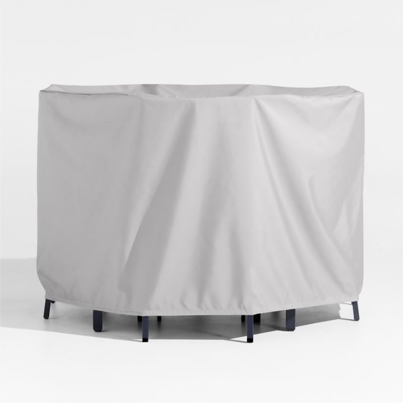 Keep your outdoor dining table and chairs looking their best with this hand-sewn cover uniquely woven to resist abrasion and fading. The breathable, water-resistant fabric protects a high table and chairs from precipitation while allowing condensation to evaporate. Solution-dyed a sophisticated shade of grey, the Saturamax fabric boasts UV protection to retain its hue for five years. Lightweight and easy to put on and take off thanks to its unique hook system, our exclusive KoverRoos®MAX outdoor dining set cover stores neatly in the included pouch.