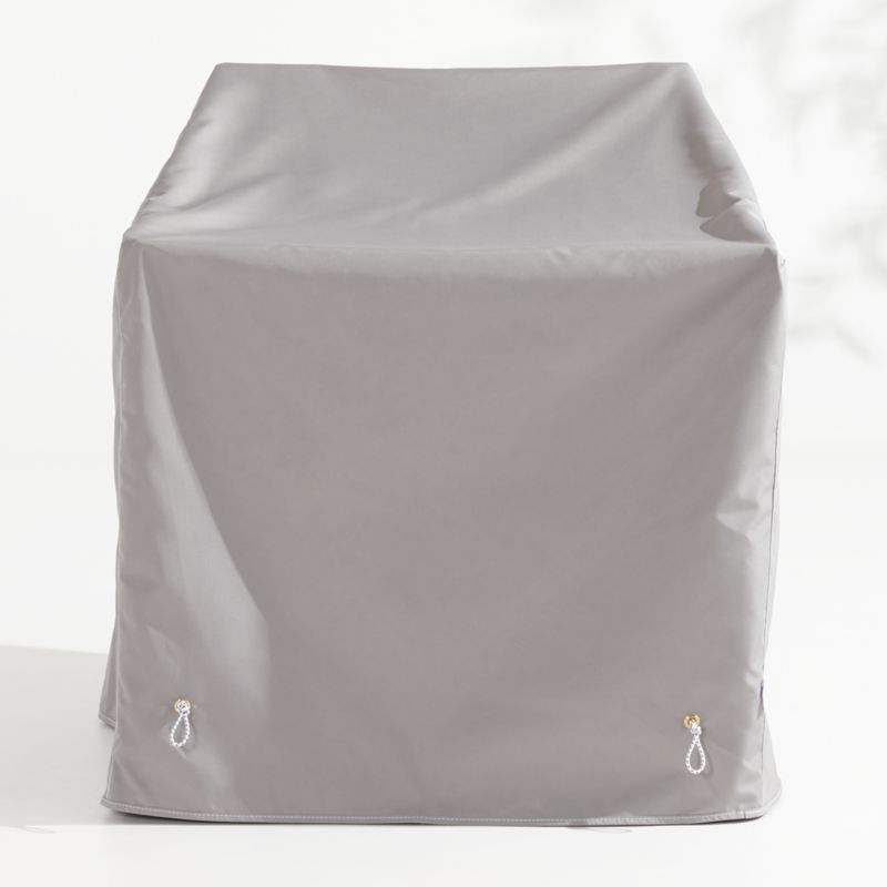 Keep your small outdoor lounge chair in its best shape with this hand-sewn cover uniquely woven to resist abrasion and fading. The breathable, water-resistant fabric protects a chair from precipitation while allowing condensation to evaporate. Saturation-dyed a sophisticated shade of grey, the Saturamax fabric boasts UV protection to retain its hue for five years. Safety stitches and binding along the edges ensure durability. Lightweight and easy to put on and take off thanks to its shock cord closure system, the KoverRoos®MAX outdoor small lounge chair cover stores neatly in the included pouch.
