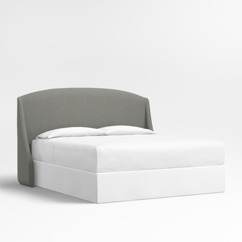 Our custom bed collection lets you mix and match our top-selling headboards and bases for a look that's truly yours. The Lafayette tall headboard gives your bed the sumptuous curves of a French-style chaise with a rounded top and sloped wings. Upholstered in a graphite grey linen blend, the statuesque headboard is designed to fit perfectly with any of our bed bases.