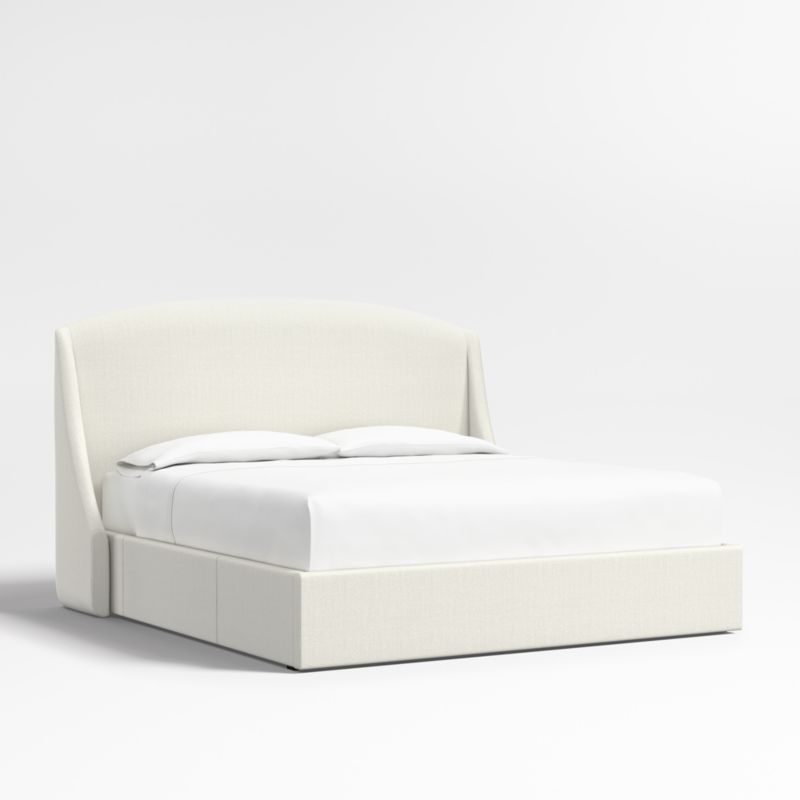 Our custom bed collection lets you mix and match our top-selling headboards and bases for a look that's truly yours. The Lafayette tall headboard gives your bed the sumptuous curves of a French-style chaise with a rounded top and sloped wings. The base integrates three roomy drawers—one on each side and one at the foot of the bed—for storing off-season clothes and extra blankets. As a plus, the side drawers open with just enough clearance to avoid hitting nightstands and other bedroom furniture. Both pieces are upholstered in a textured weave in ivory.