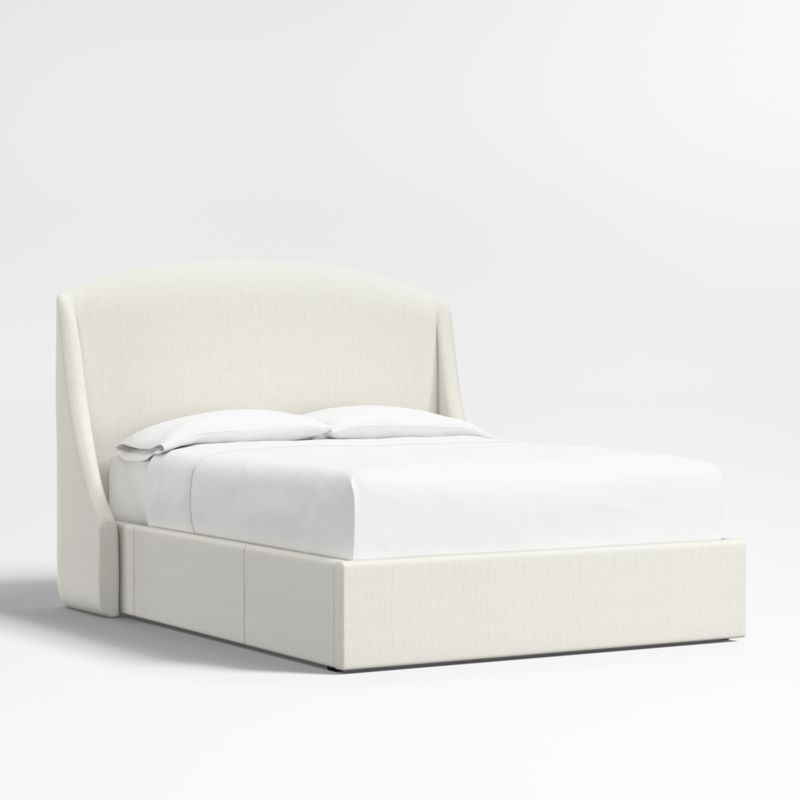 Our custom bed collection lets you mix and match our top-selling headboards and bases for a look that's truly yours. The Lafayette tall headboard gives your bed the sumptuous curves of a French-style chaise with a rounded top and sloped wings. The base integrates three roomy drawers—one on each side and one at the foot of the bed—for storing off-season clothes and extra blankets. As a plus, the side drawers open with just enough clearance to avoid hitting nightstands and other bedroom furniture. Both pieces are upholstered in a textured weave in ivory.