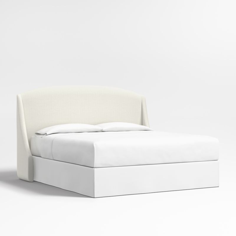 Our custom bed collection lets you mix and match our top-selling headboards and bases for a look that's truly yours. The Lafayette tall headboard gives your bed the sumptuous curves of a French-style chaise with a rounded top and sloped wings. Upholstered in an ivory linen blend, the statuesque headboard is designed to fit perfectly with any of our bed bases.