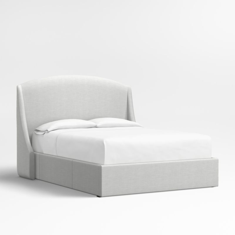 Our custom bed collection lets you mix and match our top-selling headboards and bases for a look that's truly yours. The Lafayette tall headboard gives your bed the sumptuous curves of a French-style chaise with a rounded top and sloped wings. The base integrates three roomy drawers—one on each side and one at the foot of the bed—for storing off-season clothes and extra blankets. As a plus, the side drawers open with just enough clearance to avoid hitting nightstands and other bedroom furniture. Both pieces are upholstered in a linen-blend fabric in cool grey.