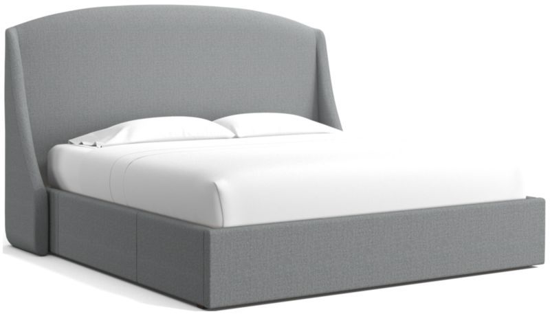 Our custom bed collection lets you mix and match our top-selling headboards and bases for a look that's truly yours. The Lafayette upholstered bed channels the sumptuous curves of a French-style chaise. The headboard charms with a rounded top and sloped wings, while the base integrates three roomy drawers—one on each side and one at the foot of the bed—for storing off-season clothes and extra blankets. As a plus, the side drawers open with just enough clearance to avoid hitting nightstands and other bedroom furniture.