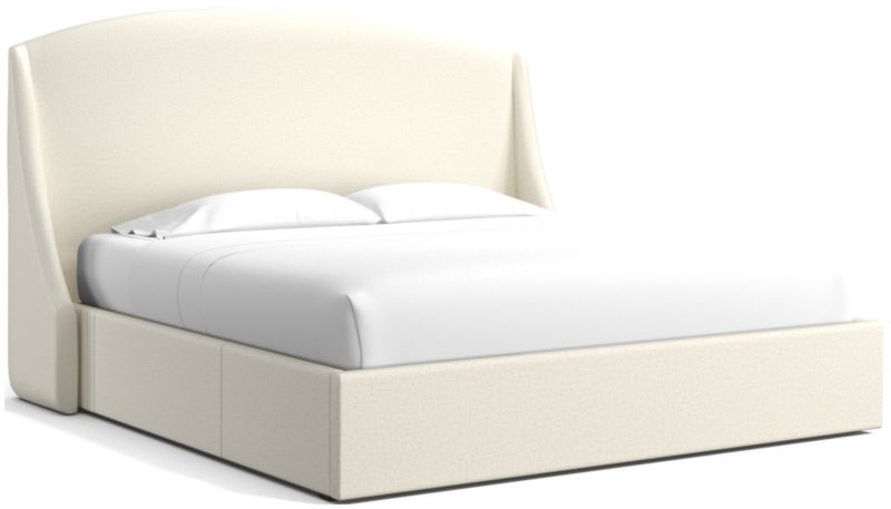 Our custom bed collection lets you mix and match our top-selling headboards and bases for a look that's truly yours. The Lafayette upholstered bed channels the sumptuous curves of a French-style chaise. The headboard charms with a rounded top and sloped wings, while the base integrates three roomy drawers—one on each side and one at the foot of the bed—for storing off-season clothes and extra blankets. As a plus, the side drawers open with just enough clearance to avoid hitting nightstands and other bedroom furniture.